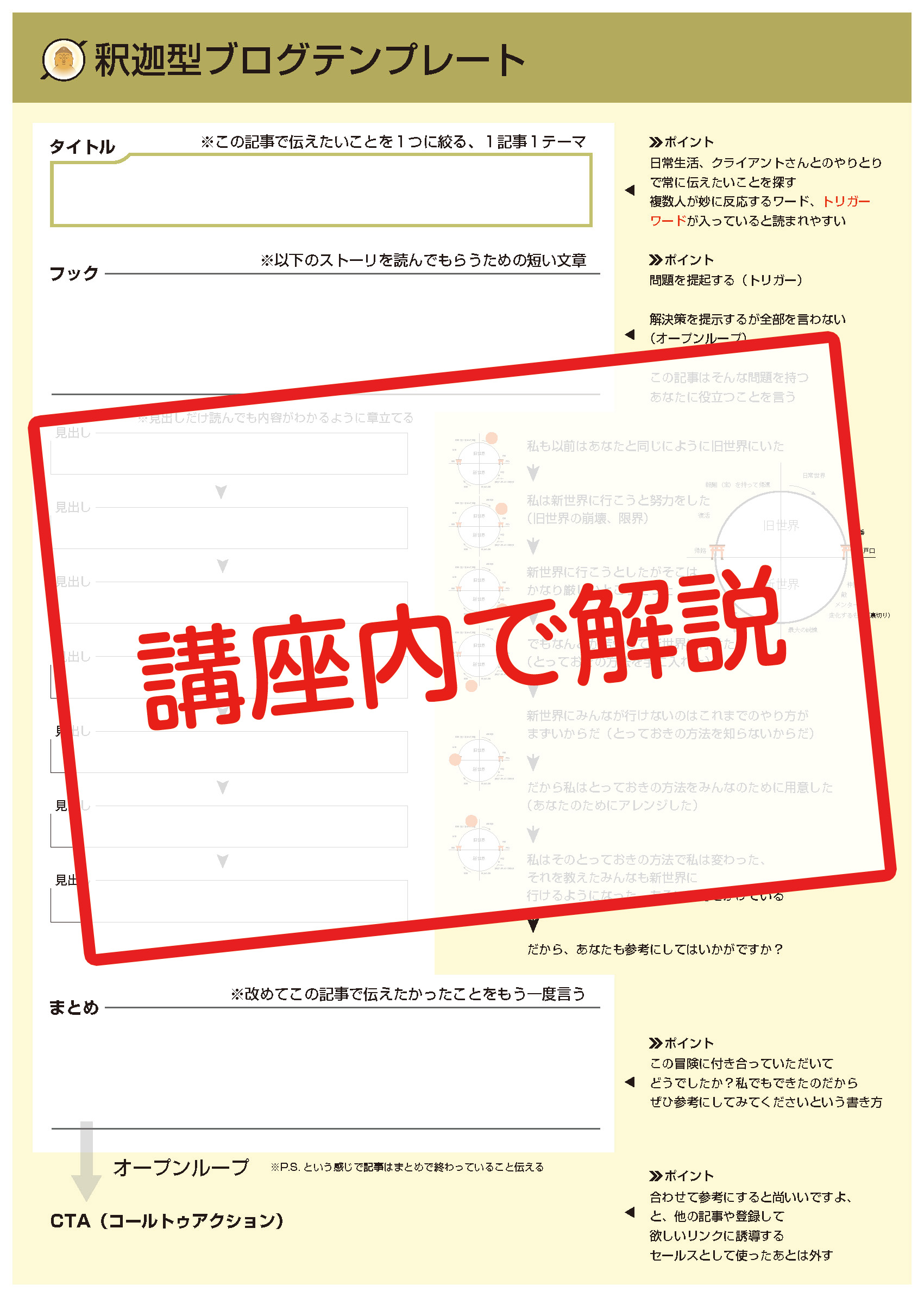 菩薩型ブログテンプレートは以前、僕が開発し、この書き方を使ってこれまで教え子たちがたくさんの申し込みをとってきた信頼の型です。