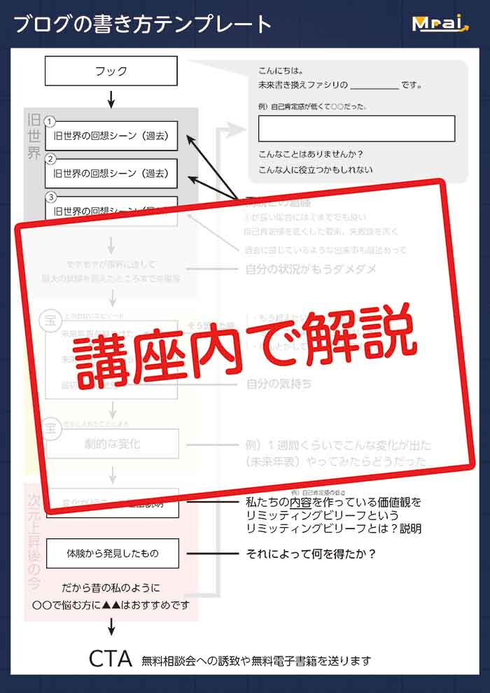 ブログを書く時は、へりくだりライティングで書きますが、へりくだりライティングには種類があり(基本はこれまで見ていただいた動画内で紹介しているステップ)、あなたが様々なテーマで書きやすいように型を用意してあります。